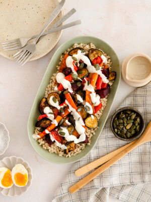 Koji divan obrok, ljudi moji! Upravo sam pojela pun tanjur ovog ječma s raznim pečenim povrćem i preljevom. Povrće sam...